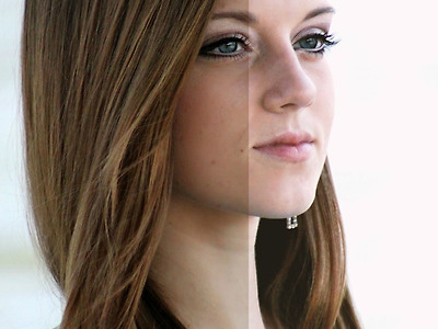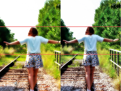 위쪽 레이어의 레벨값을 조절하여 사진의 대비를 전반적으로 올려주면