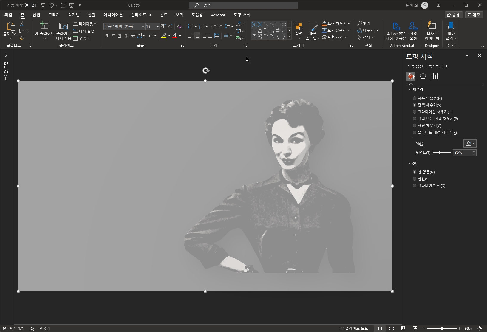 이제는 배경이 투명한 사진을 써서 장표를 제작하는 정도는 대부분의 사용자들이 사용할 수 있게 되었습니다.