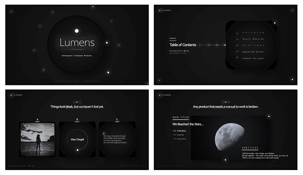 별빛과 우주를 담은, 모던감성 블랙 PPT 템플릿 : 루멘스 배포 (파워포인트 배경)