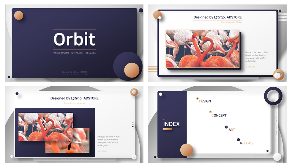 컬러감 심플모던 입체 파워포인트 템플릿 : ORBIT 깔끔한 색감과 입체감을 강조하는 PPT 템플릿입니다. 데코레이션은 본문에서 자유롭게 수정할 수 있도록 해 놓았으나, 수정 되지 않는 개체가 있