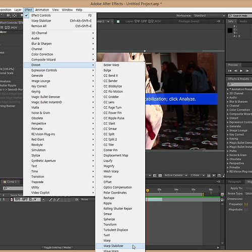 손떨림 보정 두번째. 애프터이펙트 Wrap Stabilizer 이용하여 부드러운 움직임 만들기